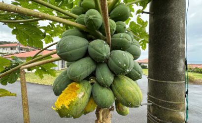 天気:☁/風向:NNE/気温:21.3℃ 事務所の敷地内にパパイヤの木があ …