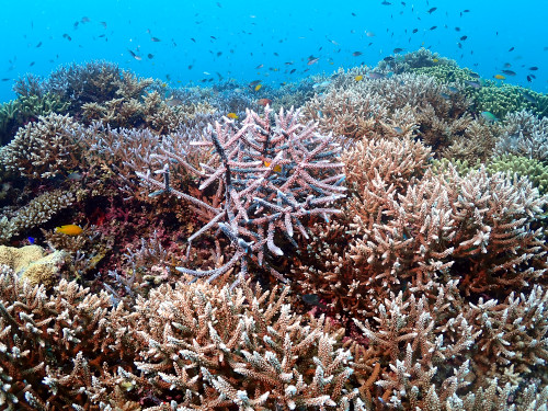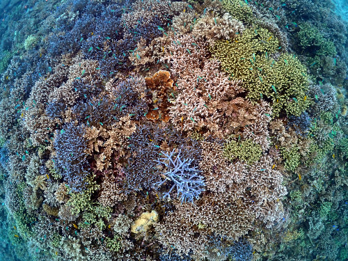 ハマサンゴの死んだ跡でしょうか?その上に新しいサンゴが育ってます。そのサンゴもやがては死んで次の新しいサンゴの土台になります。それが繰り返されて根が形作られて行きます。この根の形も大きさも数年後には変わっているかも。