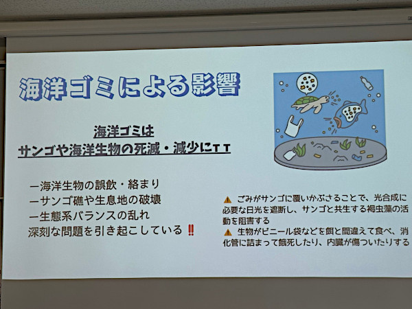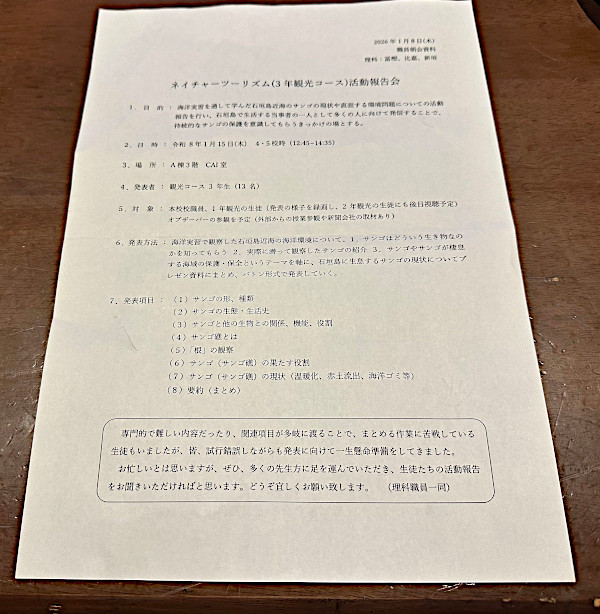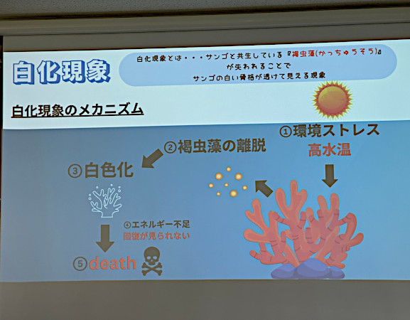 昨年ダイビング実習でサンゴや海の生物を観察しました。その活動報告会が来週あります。学校の先生や学校外の方にも見に来ていただく予定です。