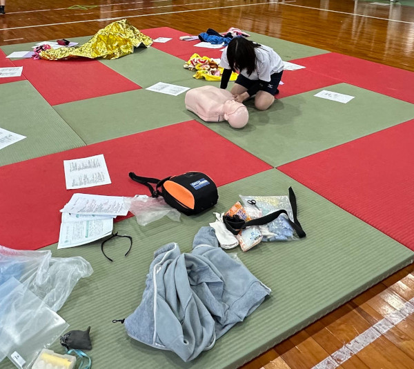 このクラスは3年生で授業は残り今日と来週の2回です。最後の2回は救命救急法です。私は救命救急法を学ぶことはとても大事なことだと思っています。小中高の必須授業に加えるべきだと思っています。