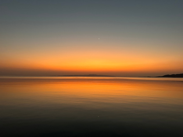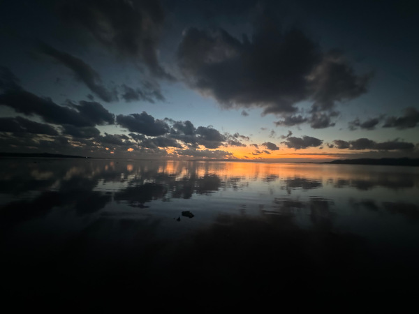 名蔵湾の夕焼けは毎日違います。私は夕陽より日没後の景色の方が好きです。