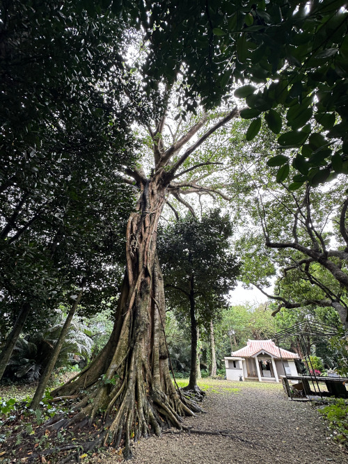 お社の手前に背の高いガジュマル?があります。物凄い存在感です。