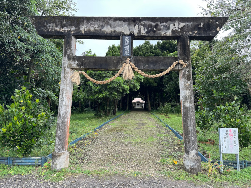 シーズンに向けて名蔵御嶽に挨拶に行って来ました。バンナ岳と於茂登の山の間の平野の真ん中にあります。鳥居を入りお社までの参道には背の高いフクギが並んでいます。