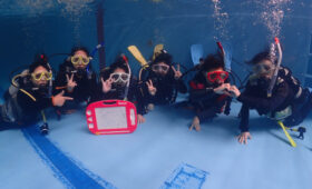 新川川は増水!赤い水がザブザブ流れてました。全部海に流れます。海は赤く染まり、赤土がサンゴや海底に降り注ぎます。